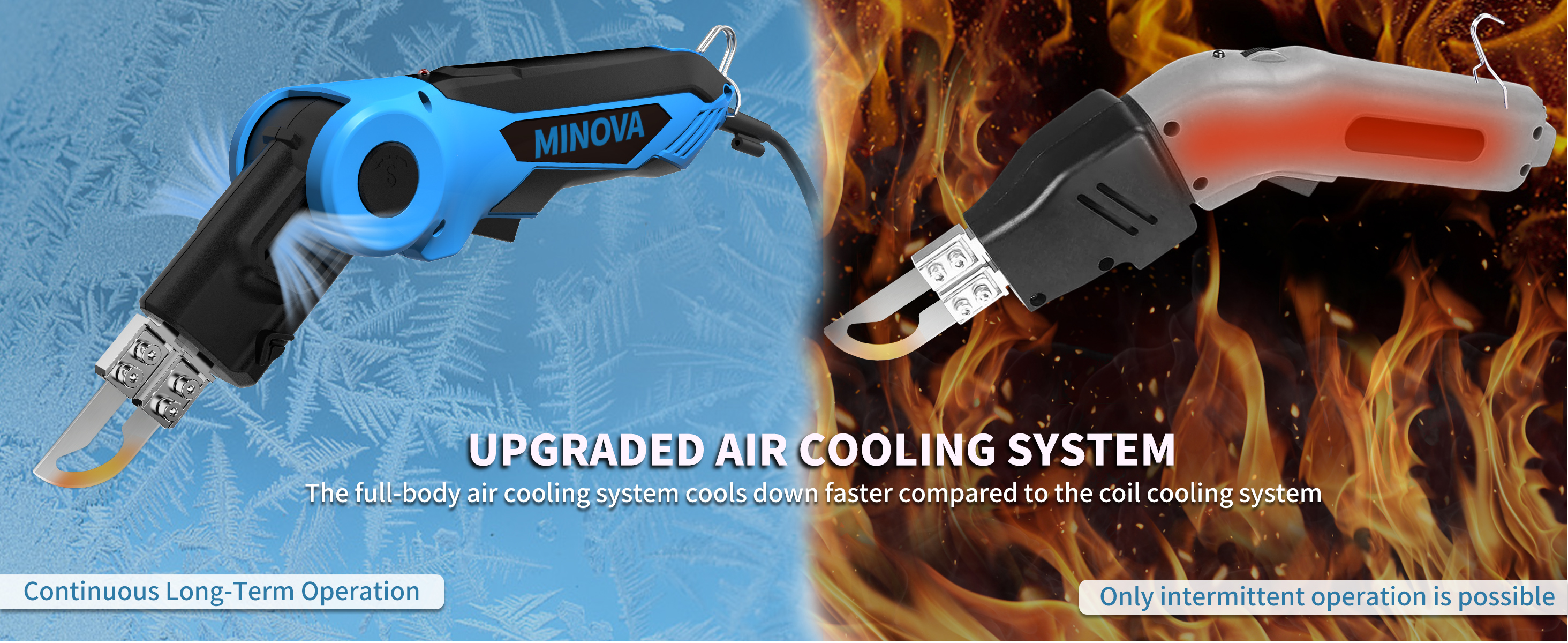 - ✅【Full-Body Air Cooling System】Designed with an air circulation cooling system, the MINOVA rope cutter hot knife works continuously without overheating, making it 50% more efficient than traditional hot knives.