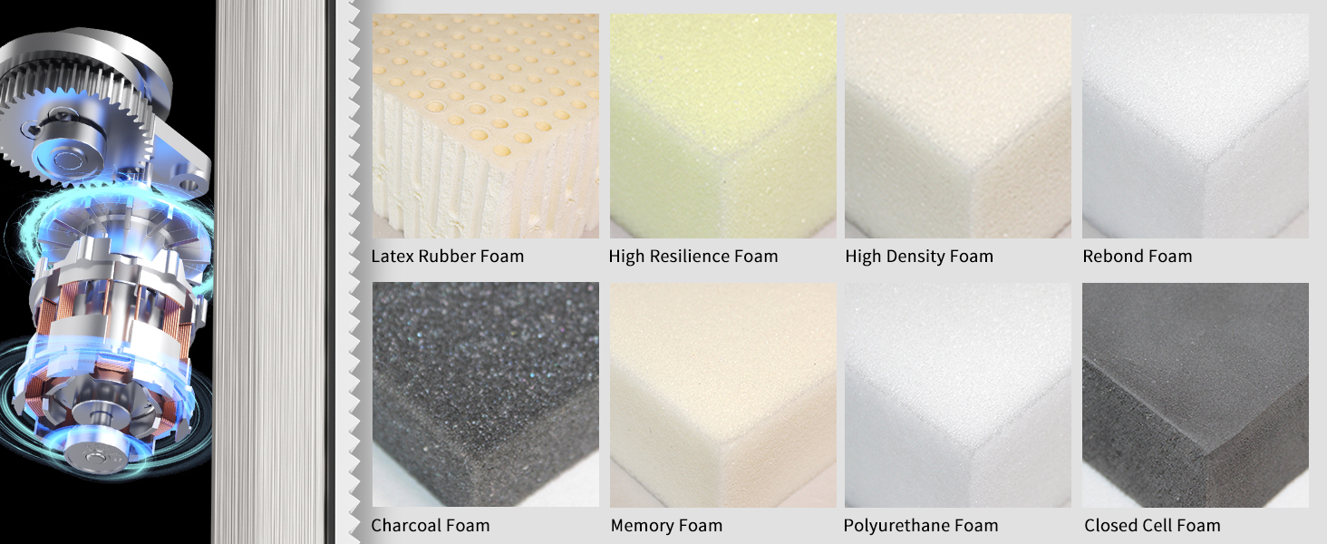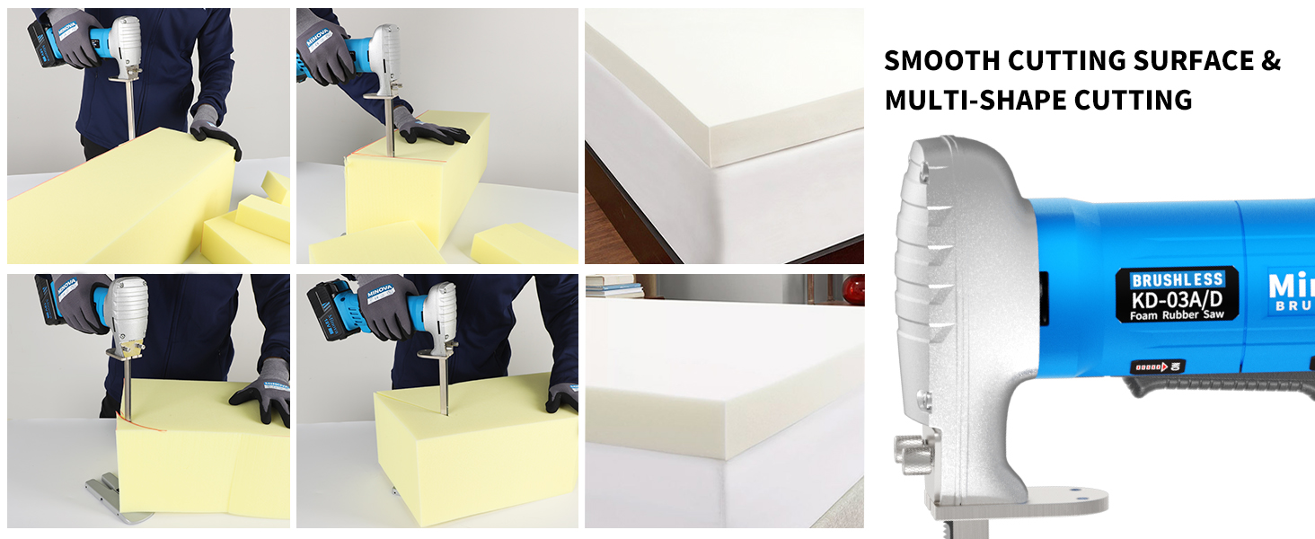 - 【CLEAN AND SMOOTH CUT, NO MESS】Fast, production cutting of all densities of foam rubber, cushion craft foam and all other flexible plastic foams. Good for mattresses, bedding support, and all other home and commercial Upholstery applications.